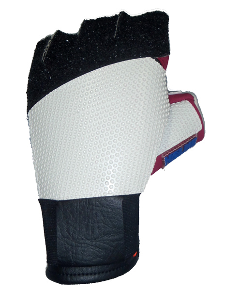 Verstärkter Handgelenkbereich mit massivem Gummizug und weißen zähen Grip-Tec-Belag.