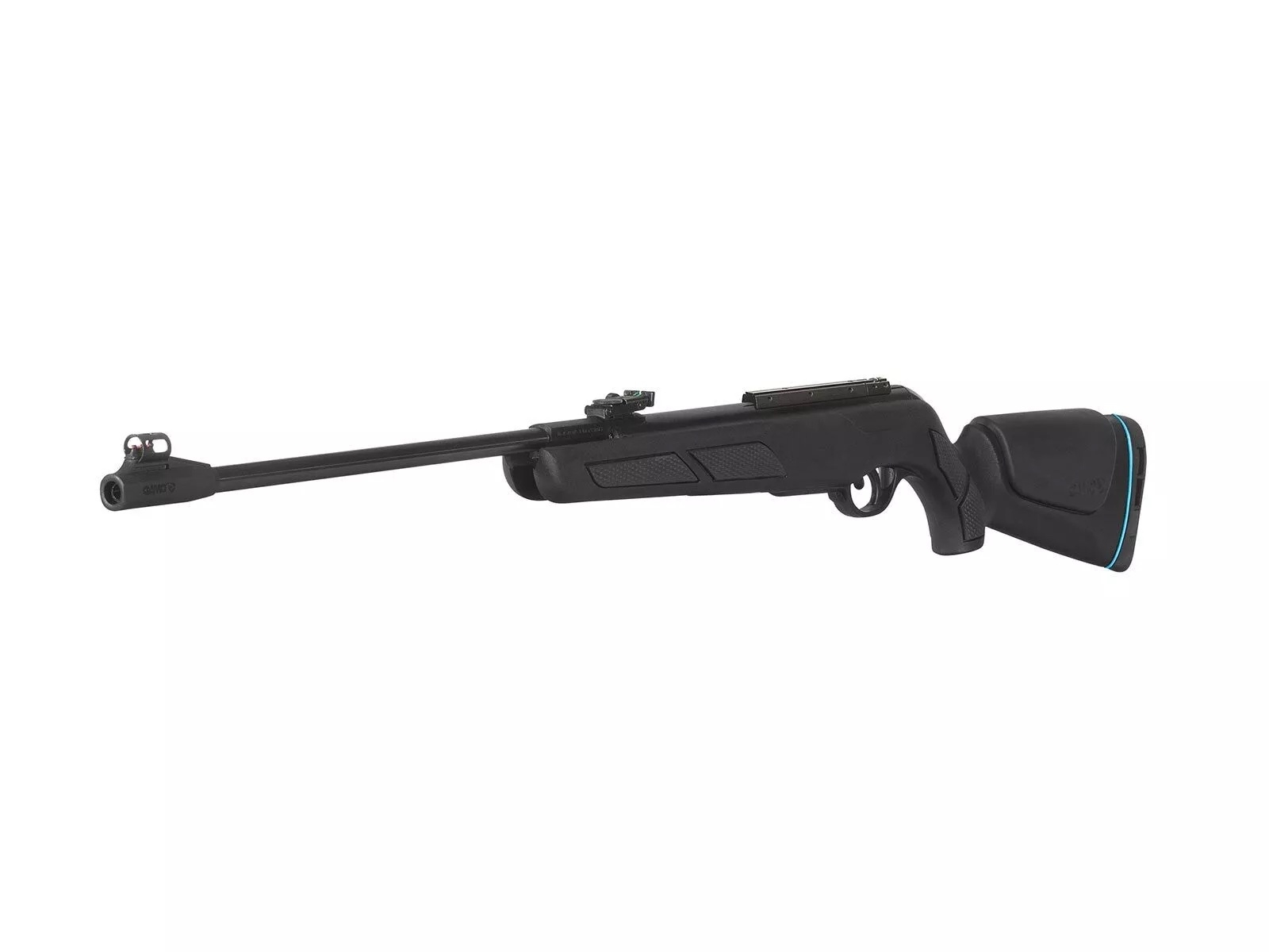 Gamos Shadow IGT ist ein leichtes Luftgewehr, das aus einem minimalistischen, hellschwarzen Lauf und einem ergonomischen, mattschwarzen Polymerschaft besteht, der Gummieinsätze enthält, um einen perfekten Halt zu bieten.