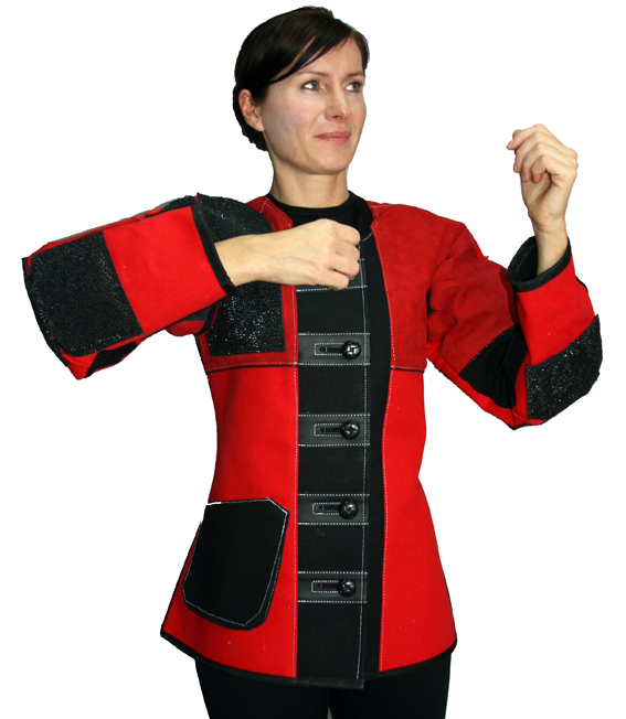 - Elastikeinsätze an Armbeuge und Unterarm – vermeidet Druckstellen ohne Stabilitätsverlust
